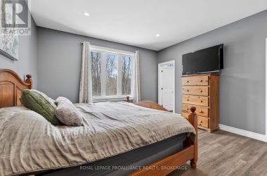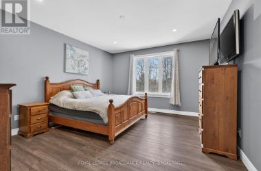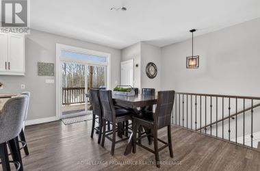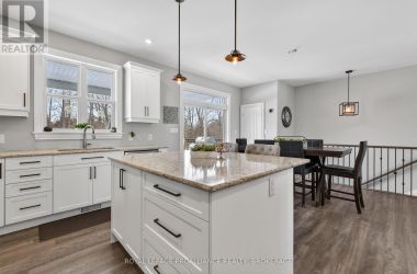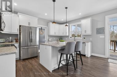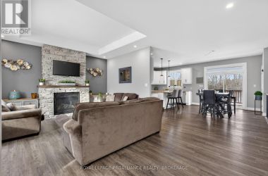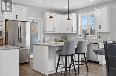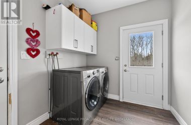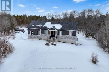 Welcome to this lovely and bright 8-year-old bungalow, offering the perfect blend of modern comfort and peaceful country living. This carpet-free home features 3+2 bedrooms and 3 full bathrooms, thoughtfully designed with quality finishes throughout. The main floor welcomes you with convenient access from the attached double garage, a dedicated laundry/mudroom area, and an inviting open-concept layout. The stunning kitchen showcases quartz countertops, a large island ideal for entertaining, and flows seamlessly into the spacious dining area and living room, complete with a cozy propane fireplace. Sliding doors off the dining area lead to a generous deck overlooking the forest - the perfect spot to relax and enjoy the view. You'll find three well-appointed bedrooms on the main level, including a beautiful primary suite featuring a large walk-in closet and a private ensuite bath, along with a full main bathroom. The fully finished lower level expands your living space with high ceilings, in-floor heating, two additional bedrooms, a 3-piece bathroom, a large recreation room, and storage. The utility room also provides convenient access to the garage. Tastefully finished throughout with durable vinyl plank flooring, this home is move-in ready and designed for easy living. Situated on 3.36 private acres and set well back from Hegadorn Road, this property offers exceptional privacy while still being easily accessible. We look forward to welcoming you home! (id:50836)