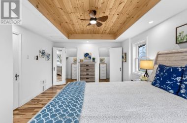 Tucked into the heart of Kingston, just minutes from downtown, Kingston General Hospital, St Lawrence College and Queen's University, this beautifully restored 1.5-storey home blends charm, comfort, and modern design. Step inside to a bright, inviting main level where every detail has been carefully considered. The galley-style kitchen features new cabinetry, quartz countertops, and all new appliances including stove, refrigerator, microwave, pot filler, and dishwasher. A cozy breakfast nook is perfect for morning coffee, while the living area with electric fireplace creates a warm atmosphere. Walk out to a deck-ideal for entertaining or relaxing. A convenient powder room near the back entrance adds everyday functionality. Upstairs offers three well-appointed bedrooms. The primary suite features a recessed natural wood ceiling and dual closet spaces. Each bedroom includes thoughtful storage, and a beautifully finished four-piece bathroom completes the level. The lower level continues to impress with a spacious laundry room and versatile secondary living area featuring a second electric fireplace and wet bar with bar fridge. A full bathroom with thermal heated floors and a heated towel rack and mirror adds a touch of everyday luxury. Outside, enjoy ample additional parking and a detached one-car garage with bonus studio space-complete with in-floor heating, fireplace and air conditioning-perfect for a home office, gym, or creative space. Located in a sought-after location minutes from Pladec Day Care Centre and in the Rideau Public, and Loyalist Collegiate and Vocational Institute School catchments. This home offers exceptional living in a central neighbourhood. More than a home-it's a lifestyle upgrade. Book your private showing today. (id:50836)