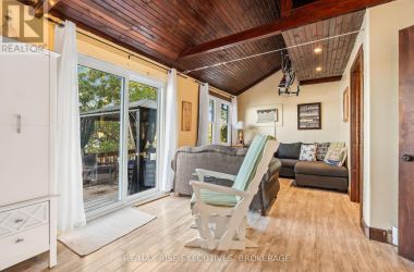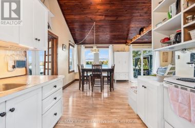 Charming Cottage on Lyndhurst Lake - 465k Lyndhurst Road, Lyndhurst, Ontario. Welcome to your lakeside retreat! This cozy 2-bedroom, 1-bathroom open-concept cottage sits on the serene shores of Lyndhurst Lake, offering 2.5 +/- acres, stunning water views and direct access to the Gananoque River system - a beautiful chain of four interconnected lakes perfect for boating, fishing, and paddling. Recently renovated - the interior features a bright and airy layout with large windows that bring the outdoors in, creating the perfect space to relax or entertain. Enjoy your morning coffee and sunsets on the large private deck overlooking the lake, or spend evenings around the firepit with friends and family. The elegant stone seawall and steps at the waters edge are remarkable and the bunkie for the kids (has hydro) or an office has relaxing views of the lake. Located between Toronto and Montreal and just minutes from the charming village of Lyndhurst, this property offers the best of both worlds - peaceful lakefront living with convenient access to local amenities. If you're looking for a weekend escape, this is a rare opportunity to own a slice of paradise in the heart of the Thousand Islands region. Highlights: open-concept living/dining/kitchen, panoramic lake views, part of the scenic Gananoque River system (4-lake chain), great swimming, boating, fishing and a quiet and private setting. (id:50836)