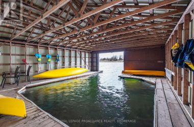 Stunning Waterfront Retreat on the UNESCO World Heritage Rideau Waterway! Welcome to your dream waterfront oasis! Nestled on the prestigious Rideau Waterway within Kingston city limits and provided with all the municipal services available to Kingston residents. This includes garbage and recycle pick up and a school bus route for the kids among others. This exceptional west-facing home offers panoramic views and breathtaking sunsets over your quiet bay of Cranberry lake. A rare find, this home also includes an ever coveted boathouse that would be next to impossible to have built today perfect for boating enthusiasts and lakeside living at its finest. The main residence blends charm and comfort, with inviting living spaces that embrace the natural beauty of the surroundings, with walls of glass to take in the views you have always been looking for but have yet to find. Enjoy seamless indoor-outdoor living with an expansive deck that wraps around the home with bonus a lakeside hot tub and a private waterfront ideal for swimming, kayaking, or simply soaking in the tranquil views. Additional features include a detached 2-car garage and a delightful guest bunkie ideal for visitors, extended family, or a private studio or office space. Meticulously maintained and well thought out with other features like a walk up basement, fire pit by the water, a buried electrical service line to avoid the risk of power outages in the event of a storm, you can move right in and begin to enjoy the home worry free immediately. Whether you're looking for a year-round residence or a weekend escape, this one-of-a-kind property offers the perfect blend of luxury, privacy, and timeless natural beauty on one of Canada's most iconic waterways. (id:50836)