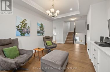 Presenting the stunning Barr Homes "Newgrange" model, a luxurious residence situated on a premium pie-shaped lot with picturesque water views and backing onto serene green space. This exceptional home offers approximately 2,700 sq. ft. of living space, featuring four spacious bedrooms and 2.5 bathrooms. The expansive primary suite boasts a beautifully appointed ensuite complete with a relaxing soaker tub, separate glass shower, and dual walk-in closets. The bright, open kitchen is filled with natural light from oversized windows and is equipped with stainless steel appliances, pot lights quartz countertop, and abundant cabinetry, making it ideal for both everyday living and entertaining. Convenience is enhanced with upper-level laundry, complete with washer, dryer, and utility sink. A well-designed mudroom provides direct access to the double-car garage for added practicality. With 9-foot ceilings, a dedicated dining area, and numerous upgrades throughout, this home offers a perfect blend of elegance and modern comfort. The large unfinished walkout basement provides incredible potential for future customization to suit your lifestyle. Come check out the sunset views across the pond from your private walk out deck. You are gonna fall in love with your new home! (id:50836)