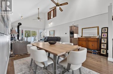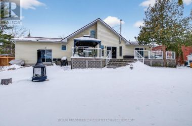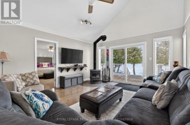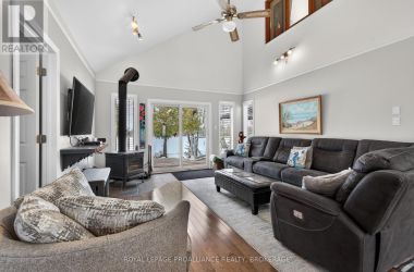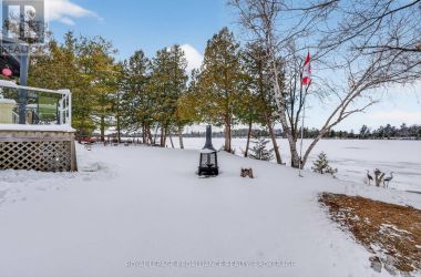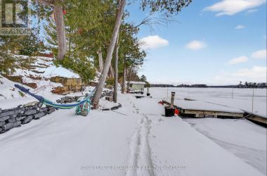 Welcome to this beautifully renovated four-season home on the highly sought-after shores of Loughborough Lake, an exceptional offering designed for effortless comfort, entertaining, and true waterfront living. This spacious and thoughtfully designed property features three bedrooms, including a serene primary suite complete with a private ensuite and walk-in closet. Two additional bedrooms provide generous accommodations for family or guests, while a versatile loft offers additional space for sleeping, recreation, or a private retreat. The main level showcases a bright, open-concept layout enhanced by rich hardwood flooring and expansive lake views. A cozy wood stove anchors the living room, creating a warm and inviting atmosphere year-round. The custom kitchen, beautifully renovated by Clearview Cabinetry, is both stylish and functional -- featuring granite countertops, a large centre island ideal for gathering, and the rare convenience of both a range and a wall mount oven for effortless entertaining. Outdoors, the meticulously maintained grounds offering a seamless connection to the waterfront. Enjoy a substantial concrete dock paired with a floating dock system, along with a hard shoreline providing easy and accessible entry to the lake -- perfect for swimming, boating and relaxing lakeside. Additional features include a septic system replaced approximately 10 years ago, a drilled well, an attached one-and-a-half car garage, and two exterior sheds providing ample storage for all your recreational needs. A rare opportunity to experience refined lakeside living -- this exceptional property is ready to be enjoyed in every season. (id:50836)