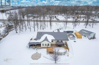 Located just south of Napanee, this well-maintained one-storey, slab-on-grade home offers comfortable country living with open views of plentiful farmland to the rear. Built in 2006 and finished with low-maintenance vinyl siding, the home provides practical design and efficient living all on one level. Inside, you'll find three bedrooms and two bathrooms, thoughtfully laid out to accommodate both family life and entertaining. The dining area opens into a bright sunroom that overlooks the back deck and pool area, creating a seamless connection between indoor and outdoor spaces and offering a peaceful setting to relax while taking in the surrounding countryside. In-floor radiant heat runs throughout the home, delivering consistent warmth and comfort year-round, mini splits provided heat and cool to the home, and a central vacuum system is already installed for added convenience. Beyond the home, the property also features a Quonset hut equipped with propane heat, providing excellent space for storage, hobbies, or workshop use. With its combination of functional outbuildings, efficient construction, and scenic rural views just minutes from town amenities, this property presents a fantastic opportunity to enjoy country living close to Napanee. (id:50836)