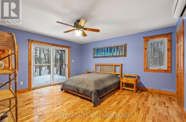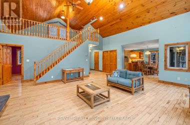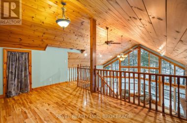 Welcome to a rare waterfront retreat where architectural character meets serene tranquility. Sitting on 4 acres of beautifully landscaped shoreline, this striking Viceroy cedar home offers breathtaking views of Buck Lake. Surrounded by natural beauty and endless recreational opportunities, the home features a dramatic open-concept living area anchored by a beautiful gas fireplace, with a loft overlooking the main living space. Comfort is ensured year-round with in-floor radiant heating on both the main floor and the lower level. The property features a clean shoreline, with the lake dropping off approximately 20 feet from shore-ideal for swimming, boating, and excellent fishing right off the dock. A hot tub located in a gazebo just off the house provides a private, year-round space to relax and enjoy the surroundings. The cedar exterior blends seamlessly with the natural environment, reflecting timeless craftsmanship and quality construction. A three-car garage, along with a three-bay attached shed, offers exceptional space for vehicles, recreational equipment, and storage-ideal for both full-time living and four-season enjoyment. This is a property that delivers privacy, space, and an exceptional waterfront lifestyle-whether you're fishing at sunrise, relaxing by the fire, or unwinding in the hot tub just steps from the house. A truly special Buck Lake waterfront offering. (id:50836)