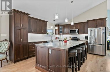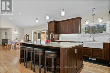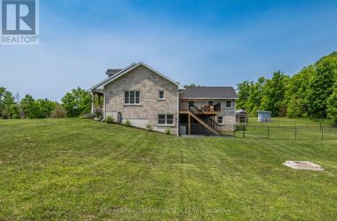Situated on over 16 acres of serene countryside, this exquisite stone bungalow, built in 2022, offers a blend of modern luxury and rustic charm. Designed to capture the essence of country living while providing every comfort, the home boasts eight spacious bedrooms and five beautifully appointed bathrooms. The main level of the home is open-concept and bathed in natural light. The master suite is a true retreat, complete with a walk-in closet and a five-piece en-suite bathroom, ensuring a private oasis to unwind after a long day. Four of the five bedrooms are conveniently located on the main floor, offering ample space for family and guests, while the remaining bedroom is located in the lower level. Two of the bathrooms on the main level further enhance convenience, making this an ideal home for families of any size. Above the garage, a loft area offers additional room for a variety of uses, from an art studio to a quiet reading nook. The lower level is just as impressive, featuring a large cold room perfect for food storage, while the rest of the basement is equipped with in-floor radiant heating, ensuring comfort throughout the seasons. The expansive recreation room, complete with large glass sliding doors, opens directly onto the patio and fenced backyard, creating an ideal space for entertaining or simply enjoying the natural surroundings. The property is also home to over 100 Sugar Maple trees, offering a unique opportunity to tap for syrup. The land itself is perfect for exploring, gardening, or just enjoying the peace and privacy of rural living. The home also features a whole-house generator, providing peace of mind during inclement weather, and an attached garage equipped with an electric vehicle charging plug, ensuring your car is always ready to go. This remarkable property offers an exceptional lifestyle, blending the best of modern design with the tranquil beauty of the countryside, making it the perfect place to call home. (id:50836)