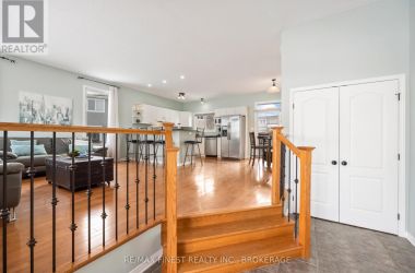 This 2+1 bed, 3 full bath custom bungalow offers a beautifully designed floor plan loaded with thoughtful upgrades throughout. The bright main level features hardwood flooring, ceramic tile, 9-ft ceilings, oversized transom windows, and pot lights including in the kitchen, creating a warm and inviting space. The spacious kitchen offers ample cabinetry and counter space and opens seamlessly to the cozy living and dining area-perfect for everyday living and entertaining. The primary bedroom showcases modern flooring, blackout blinds, and a neutral upgraded ensuite with custom glass shower doors. A second main-level bedroom is well-sized, bright, and calming. The professionally renovated basement (2022) provides excellent versatility for extended family, teens, or additional living space. Highlights include a large bedroom with walk-in closet, heated flooring in the beautifully finished bathroom, and a convenient kitchenette complete with fridge, stove, hood vent, and microwave. A walk-up basement entrance with concrete stairs and drain, replaced egress window, California shutters, washer hookup in the furnace room, and a locking metal door at the main-level stair entry enhance both functionality and privacy. Outside, the pie-shaped lot offers fantastic outdoor living with a spacious deck and poured concrete hot tub pad with hot-tub-grade electrical wiring already run to the panel. Black aluminum deck railings, pergola, stairs from deck to yard, and a new backyard gate makes the backyard pop! Additional upgrades include a new garage door and WiFi garage door opener (2022), interlock driveway feature (2018), stamped concrete walkway widening the driveway (2022), and a high-efficiency rental gas furnace and A/C. Completing the package is a 1.5-car garage with inside entry and an oversized front porch. A move-in-ready home offering flexible living space, quality updates, and fantastic indoor-outdoor potential. (id:50836)