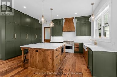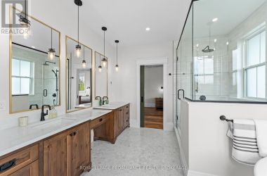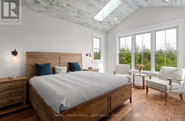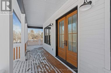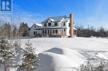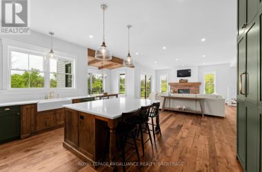 An opportunity to own one of Kingston Home Builders Associations award winning homes. Step inside this stunning new custom home by Concord Homes, one of Kingston's finest builders. A traditional farmhouse where timeless charm meets modern craftsmanship, this home was designed to feel as though it's always belonged here. From the classic peaked roof-lines to the warm hemlock floors and ship-lap walls, every detail invites comfort and style. Set on 2 acres of peaceful countryside, you'll love relaxing on the wide wraparound front porch or the back covered porch with views of nature all around. The main floor boasts 10-foot ceilings and a cozy great room centered around a reclaimed brick wood fireplace with a solid maple mantle. At the heart of the home is a beautifully designed kitchen, complete with a spacious center island, custom cabinetry, and a hidden walk-in pantry that keeps everything organized and out of sight. Upstairs, the second floor offers a convenient laundry room, four bedrooms, and a four-piece bathroom. The primary suite is a retreat with cathedral ceilings, skylights, and a luxurious ensuite. The finished walk-up lower-level features 9-foot ceilings, an additional bedroom, a huge media room, a wet bar, and a full bathroom with a steam shower and wet/dry sauna with red light therapy - creating the perfect home wellness retreat. For added convenience and space, the oversized three-car attached garage offers plenty of room for vehicles, hobbies, or extra storage. Located on a quiet country road just 10 minutes from all west end amenities. (id:50836)