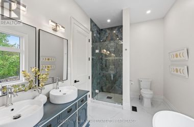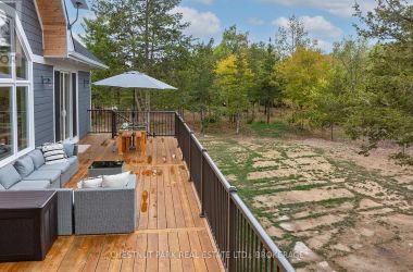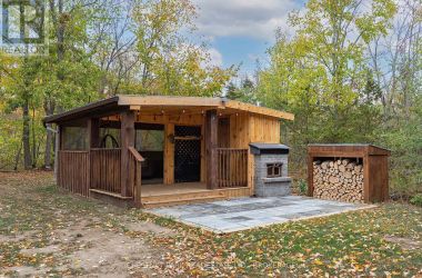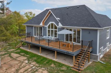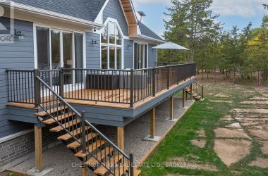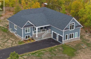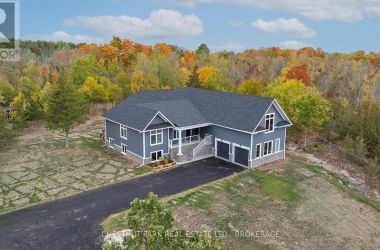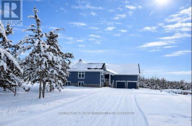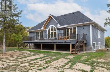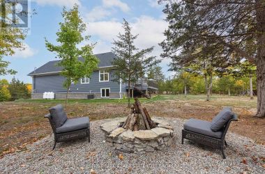 Experience the epitome of luxury country living in this stunning home that combines contemporary elegance with impeccable attention to detail. Flooded with natural light and designed with exquisite craftsmanship, this residence offers the perfect blend of elegance, comfort, and modern sophistication in a serene setting.The bright and airy interior features 10' ceilings, striking 8' solid wood doors, pot lights, and masterfully handcrafted mouldings throughout. The 2,158 SF main level boasts oak floors and an open-concept design with vaulted coffered ceilings and large windows that frame picturesque views of the countryside and expansive deck. The custom kitchen features a generous island and quartz countertops, blending style with functionality.The primary suite offers a striking feature wall, patio doors to the deck, two custom closets, and a luxurious ensuite with a soaking tub and walk-in shower adorned with spectacular tile. The main floor includes two additional bedrooms, an office, a full bathroom, and a powder room. A private hallway leads to a fourth bedroom with an ensuite and direct outdoor access - perfect for family or guests.The stairway to the lower level is equipped with motion-activated lighting, blending functionality and ambiance. This 2,167 SF space includes a fifth bedroom, cold room, ample storage, and bathroom rough-in. Set on nearly 2.5 acres on the outskirts of the charming town of Yarker and surrounded by mature trees for ultimate privacy, this home boasts a massive 734 SF garage with 18' ceilings, with the potential to add a loft space. Enjoy the outdoor amenities, including an inviting fire pit, a separate cabin for entertaining or relaxation, a sauna, and a large storage area.Rarely is a property of this caliber available. Experience the perfect blend of luxury and natural beauty in this exceptional home. Discover a sanctuary where breathtaking views meet unparalleled craftsmanship, creating an inviting space you'll be proud to call home. (id:50836)