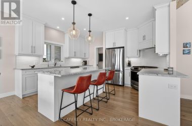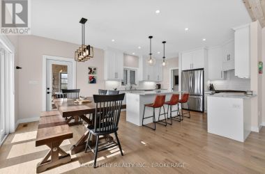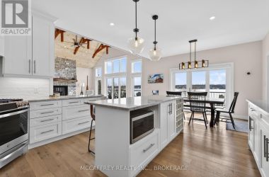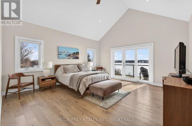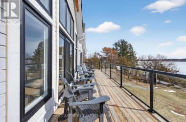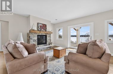 Welcome to 5425 County Rd 9, Greater Napanee-a stunning lakeside retreat blending timeless charm and modern comfort. Built in 2021 by Home Valley, this inviting bungalow is nestled on a generous lot with prime waterfront on serene Hay Bay. Step inside to be greeted by an open, light-filled main floor featuring expansive windows that frame tranquil water views. The spacious family room centers around a cozy fireplace, creating the perfect ambiance for relaxing evenings. The open-concept kitchen boasts quality appliances, abundant cabinetry, and a convenient island, seamlessly connecting with the dining area for effortless entertaining. Just off the dining area, enjoy a sunroom that offers a peaceful space to soak in the views and unwind. The main level features a primary suite with breathtaking water views, direct access to an expansive deck, and a spacious walk-in closet for ultimate convenience. A den that could be used as an office or guest room, along with a full bath, makes this space ideal for families or guests. Downstairs, the fully finished walkout basement expands your living space with a bright rec room, also warmed by its very own fireplace. Perfect for movie nights or gatherings, this level offers unparalleled comfort with in-floor radiant heating-keeping you warm and toasty all winter long. The basement also features a convenient servery, making it ideal for hosting and entertaining. On the lower level, you'll also find three more bedrooms, providing privacy and flexibility for family, guests, or home office needs, plus an additional full bathroom. Gather with friends and family around the beautiful fire pit, or enjoy sunny days on your private dock-perfect for fishing, swimming, kayaking, or simply taking in the sunrise over the bay. Lush landscaping provide privacy while enhancing the natural beauty of the setting. Located just minutes to Napanee's amenities and an easy drive to Kingston, this exceptional property offers the best of lakeside living. (id:50836)