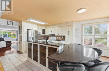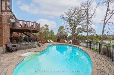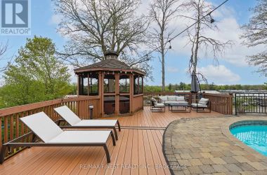 Welcome to 593 Forest Hill Drive - a beautifully appointed executive bungalow that combines elegance, comfort, and the perfect setting for entertaining. With nearly 2,000 sq. ft. on the main level, this spacious 3-bedroom home offers an open and inviting layout ideal for modern living. Step inside to a bright living room with gleaming hardwood floors, flowing seamlessly into the open-concept kitchen and dining area. The kitchen is a true gathering space, featuring a large island, ample storage, and a walkout to an elevated deck where you can enjoy sweeping views of Collins Bay. The primary suite provides a relaxing retreat with a generous walk-in closet and a private ensuite bath. The fully finished walkout basement extends your living space and is an entertainer's dream - complete with a large rec room, cozy media area, full bar, and dedicated games space featuring a shuffleboard table. A full bathroom and home office add functionality and flexibility. Step outside to your private backyard oasis. The lower patio overlooks an inviting inground pool and a hot tub nestled beneath a charming gazebo - the perfect spot to unwind and entertain year-round. Located in one of Kingston's most desirable west-end neighbourhoods, close to parks, trails, schools, and shopping, this home offers an exceptional blend of luxury, lifestyle, and scenic beauty. (id:50836)