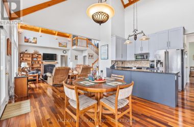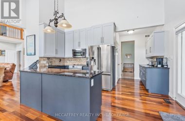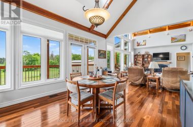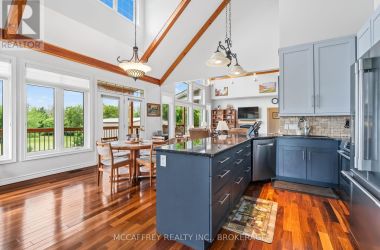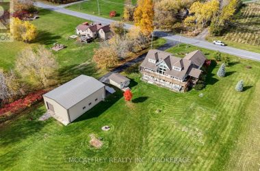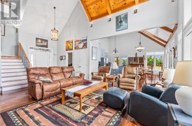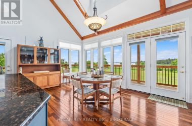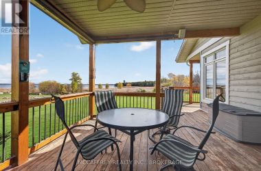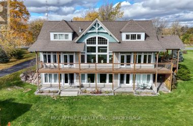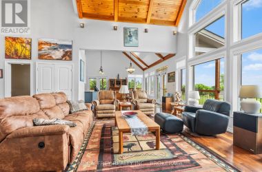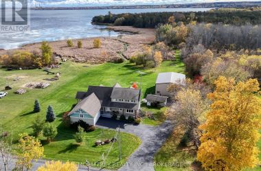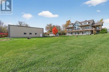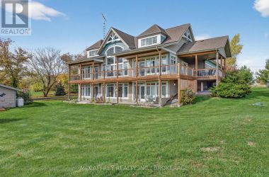 Welcome to your dream home on the shores of Hay Bay! This custom-built two-story masterpiece, constructed in 2012, blends luxury, comfort, and scenic beauty. Set on a 1.72-acre lot with 202 ft of waterfront, it offers unparalleled living. As you arrive, a double wide paved driveway leads to an attached 2-car garage and a distinctive detached 40' x 58' garage, complete with hydro and oversized doors (12'x14' & 12'x12'), ideal for boats, RVs, or a workshop. Inside, the main level impresses with 28 ft high cathedral ceilings adorned with BC Fir wood beams. Expansive windows illuminate interiors and offer picturesque views of the landscaped backyard and sparkling waters. This level includes a cozy living room with a gas fireplace, an office/den, and a gourmet kitchen with granite countertops, oak cabinetry, and a breakfast bar. The dining room and easy deck access enhance indoor-outdoor living, as well as entrances from the laundry room, and connections to the garage. Two spacious bedrooms, one with deck access, plus a 3 pc and a 4 pc bath, complete this level. Ascend the beautiful wooden staircase to discover the private sanctuary of the Primary suite. Here, you'll find a spacious bedroom complemented by two walk-in closets and a 4 pc ensuite, providing the ultimate retreat. The finished lower level enhances the home's entertainment and storage capabilities. The rec room features a wet bar, 2 pc bath, cold cellar, substantial storage room, and a utility room. Additionally, a semi-finished bedroom with walk-out offers flexibility for your needs. The outdoor space is nothing short of spectacular, with meticulously designed flower gardens and a 10'x24' floating dock invites you to embrace the waterfront lifestyle. Located just minutes from downtown Napanee, this home provides the perfect combination of convenient access to amenities and the privacy and tranquility of waterfront living. (id:50836)