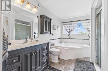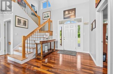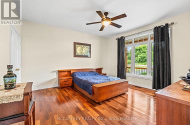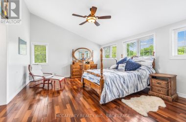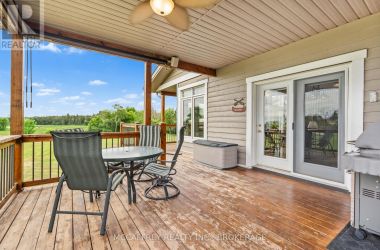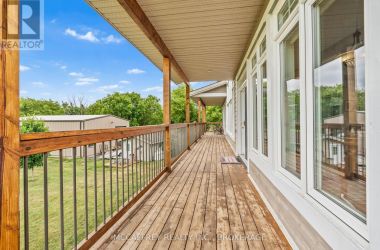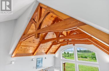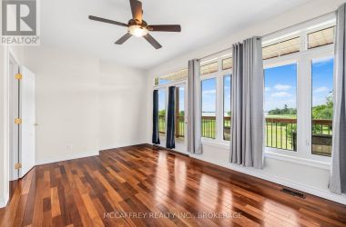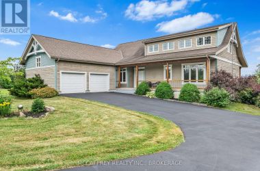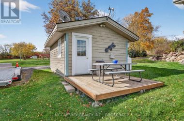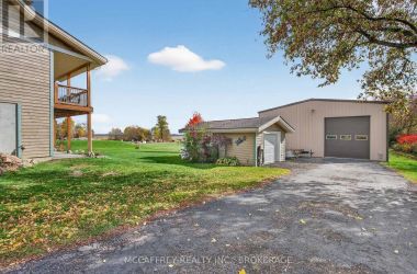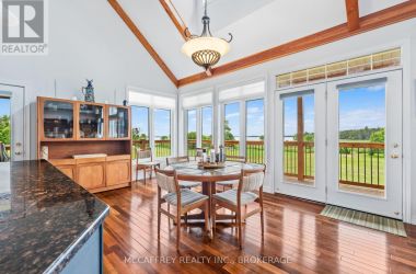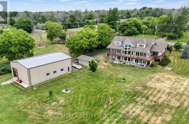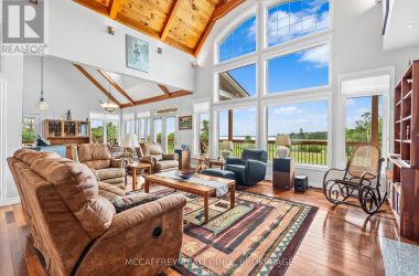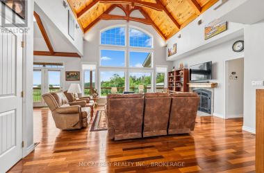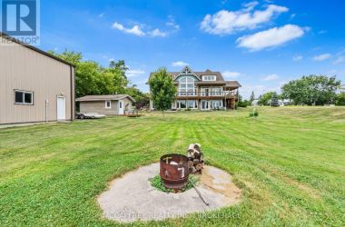 Welcome to your dream home on the shores of Hay Bay! This custom-built two-story masterpiece, constructed in 2012, blends luxury, comfort, and scenic beauty. Set on a 1.72-acre lot with 202 ft of waterfront, it offers unparalleled living. As you arrive, a double wide paved driveway leads to an attached 2-car garage and a distinctive detached 40' x 58' garage, complete with hydro and oversized doors (12'x14' & 12'x12'), ideal for boats, RVs, or a workshop. Inside, the main level impresses with 28 ft high cathedral ceilings adorned with BC Fir wood beams. Expansive windows illuminate interiors and offer picturesque views of the landscaped backyard and sparkling waters. This level includes a cozy living room with a gas fireplace, an office/den, and a gourmet kitchen with granite countertops, oak cabinetry, and a breakfast bar. The dining room and easy deck access enhance indoor-outdoor living, as well as entrances from the laundry room, and connections to the garage. Two spacious bedrooms, one with deck access, plus a 3 pc and a 4 pc bath, complete this level. Ascend the beautiful wooden staircase to discover the private sanctuary of the Primary suite. Here, you'll find a spacious bedroom complemented by two walk-in closets and a 4 pc ensuite, providing the ultimate retreat. The finished lower level enhances the home's entertainment and storage capabilities. The rec room features a wet bar, 2 pc bath, cold cellar, substantial storage room, and a utility room. Additionally, a semi-finished bedroom with walk-out offers flexibility for your needs. The outdoor space is nothing short of spectacular, with meticulously designed flower gardens and a 10'x24' floating dock invites you to embrace the waterfront lifestyle. Located just minutes from downtown Napanee, this home provides the perfect combination of convenient access to amenities and the privacy and tranquility of waterfront living. (id:50836)