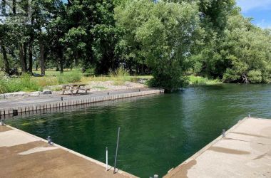 Discover Waterfront living at its finest on Howe Island. This beautifully positioned 196' waterfront lot sits within the calm, sheltered waters of Cassidy's Bay an exceptional setting that invites you to slow down, breathe deeply and imagine life shaped by the rhythm of the river.Wake up to quiet mornings on the water, launch your boat from the 30' x 36' permanent concrete dock, and take advantage of the on-site boat launch. Spend your days swimming, paddling, or simply enjoying the ever-changing views across the bay. With nearly 200 feet of pristine shoreline and established mature trees surrounding a cleared, ready-to-build site, the property offers peace, privacy, and an effortless connection to nature. The property sits on 1.4 acres providing generous space for your vision whether that's a refined modern home or a timeless waterfront retreat. Restrictive Covenant may apply. 608 Spithead Drive is more than a place to build it's a serene, scenic lifestyle deeply connected to the St. Lawrence River. A rare opportunity to create something extraordinary in one of Howe Island's most cherished settings. (id:50836)