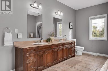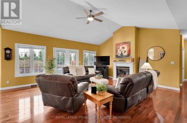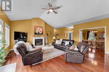 Set just off the Thousand Islands Parkway, 61 Connor Drive stands proudly with its stone exterior, vaulted living spaces, and over two acres of peaceful, private surroundings. This expansive 3-bedroom + den, 2.5-bath bungalow offers 2,400 sq. ft. of bright, thoughtfully designed main-floor living-ideal for families who value space, light, and comfort. Inside, the heart of the home is the vaulted-ceiling living room, where a propane fireplace and oversized windows create a warm, inviting atmosphere. The bright eat-in kitchen overlooks the property and connects seamlessly with the outdoors, while a separate dining room offers the perfect setting for gatherings and celebrations. The spacious primary suite, has a large ensuite and walk in closet. Two additional bedrooms,and a versatile den/home office, making the layout perfect for both work and family life. With 2.5 bathrooms, main floor laundry and mud room off the two car garage everyday convenience comes naturally. The unfinished lower level-complete with a bathroom rough-in-provides exceptional potential for future expansion. Whether you imagine a large recreation room, home gym, additional bedrooms,hobby spaces, or a workshop, the footprint is ready for your vision.Outdoors, the estate-sized lot offers incredible room to live, play, and entertain. There is ample parking, sweeping green space, and an above-ground pool for summer enjoyment. With more than two acres, the possibilities are endless-gardens, outdoor living areas, or future outbuildings. Located just minutes from Gananoque and the 401, this home combines quiet, scenic living with convenient access to everything the Thousand Islands region offers. A rare offering of space, natural beauty, and future potential - 61 Connor Drive invites you to imagine your life here. (id:50836)