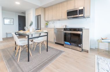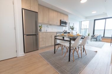 with 772 square feet of efficiently designed living space. The suite features an open concept living and dining area, in suite laundry, a