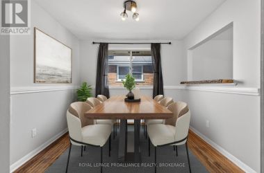 Welcome to 697 Fleet Street, a great home located in the highly desirable west end of Kingston - an ideal opportunity for first-time buyers looking to settle into a family-friendly neighbourhood. Step through the front door into a bright and spacious living room filled with natural light from the large front window and complemented by hardwood floors. The kitchen offers plenty of counter space and cupboard storage, along with a window overlooking the front yard, making it both functional and welcoming for everyday cooking. Just off the kitchen, the separate dining room creating the perfect setting for family meals, holiday gatherings, or hosting friends. Upstairs, you'll find three comfortable bedrooms, all with hardwood floors, along with a 4-piece bathroom. The primary bedroom includes two closets, giving you that extra storage space every homeowner appreciates. The lower level provides even more living space, with a recreation room highlighted by a beautiful electric fireplace and a brick feature wall with built-in cupboards - perfect for relaxing evenings, movie nights, or a play area. This level also includes a bright laundry room, a 3-piece bathroom, additional crawl space storage, and a convenient walk-out to the backyard. Outside, the private backyard feels like your own retreat. Surrounded by mature trees, it offers landscaped gardens, a peaceful pond, and a wooden pergola with a privacy wall and patio area - an ideal spot for summer BBQs, entertaining, or simply enjoying time outdoors. There's also plenty of open space for kids or pets to run and play. Tucked away on a quiet street and just steps from Bayridge Public School, this home offers the perfect combination of location, comfort, and space to grow. A wonderful place to start your homeownership journey. We look forward to welcoming you home. (id:50836)