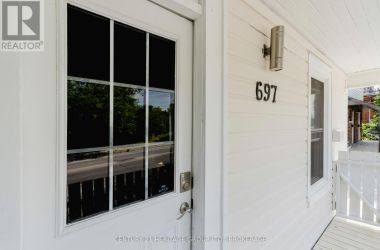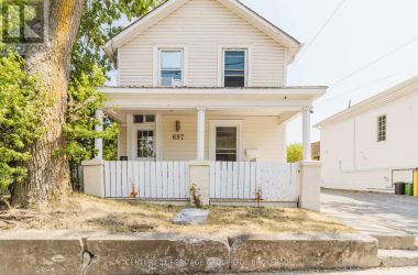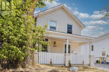 Welcome to 697 Montreal Street, ideally situated just minutes from downtown Kingston. The main floor boasts a beautiful and modern kitchen with gleaming counertops, a gorgeous bathroom with a bright, polished finish, a warm and inviting family room, and a spacious adjacent dining room. Upstairs you will find a generous primary bedroom featuring freshly sanded hardwood floors, two comfortable secondary bedrooms and another bathroom for convenience. Also noteworthy, the NEW FURNACE put in 2022.The backyard features its' own private patio area, perfect for entertaining. There is a handy storage area in the backyard for tools, outdoor gear, or seasonal items. While the home already has impressive updates, it will need a new roof, along with a few other cosmetic updates. Therefore it has been priced accordingly. This is a great opportunity to build equity or have a profitable rental. Conveniently located near schools, parks, 4 minutes to the hospital, only 3 minutes to the NEW Wabaan Bridge and a short bus or bike ride to Queen's University. This home offers incredible value at this price. Book your showing today!! (id:50836)