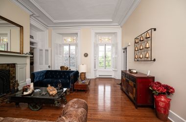 Timeless Elegance for Lease – Unit 7, 131 King Street East, Kingston. Available for a 1-year lease at $3,200/month + utilities. Step into a timeless residence in one of Kingston’s most historic buildings. Originally built in 1842, Unit 7 blends heritage charm with modern comfort. This spacious condo features two bedrooms, two bathrooms, and a versatile third-floor loft—ideal for a home office or creative space. Soaring 15-foot ceilings in the living room create a grand, airy feel, while the updated kitchen and dining area offer style and functionality. With over 1,800 sq ft of living space, the layout is perfect for both relaxing and entertaining. Large windows fill the home with natural light, and refined finishes enhance its elegance. Residents enjoy exclusive amenities and dedicated parking in this prime downtown location. A rare opportunity to lease a piece of Kingston’s past with all the conveniences of contemporary living.