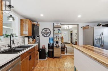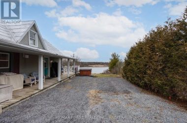 Tucked away in Rankins Corner on just over 100ft of shoreline on the Napanee River, you'll find this charming home. Just 5 min from downtown Napanee, and sitting on just over an acre, this property offers peaceful waterfront living, the perfect sunset view and great fishing right off the dock! The main floor features one bedroom, a beautiful new full bathroom, open concept living/dining/kitchen. Upstairs you'll find the primary bedroom, 2 other bedrooms and another spa like bathroom. Other features include new heat pump, updated water system & septic plumbing. The BONUS feature is the large detached garage with 2 carports, complete with a workshop. Loft space that provides a ton of extra storage AND a chicken coop - fresh eggs everyday. (id:50836)
