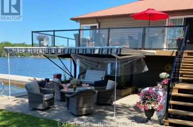 Enjoy spectacular sunsets from your wraparound deck or living room overlooking beautiful Charleston Lake. This four-season waterfront home offers 3 bedrooms, 1.5 baths, and a spacious finished walk-out basement, providing ample room for family and guests. A separate 1-bedroom bunkie (264.71 sq/ft) adds extra accommodation, perfect for hosting while everyone enjoys the sandy frontage and beach. The attached boathouse and newer concrete dock create an ideal waterfront setup with direct access to Charleston Lake's more than 100 miles of shoreline-perfect for boating, swimming, amazing fishing, and endless summer fun. Upgrades include almost all new windows and doors, a deck and railing (2023), flooring (2025), a roof (2025), bathrooms (2024), a septic system (2015), an updated water system, a basement (2025), and a fully redesigned kitchen. This is a move-in-ready waterfront property offering comfort, charm, and unforgettable lake living on one of EasternOntario's most desirable lakes. Schedule your private viewing today. (id:50836)
