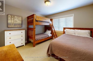 Welcome to Wolfe Springs Resort! Enjoy fractional ownership at this 4-season vacation property with the use of all the resort amenities and enjoyment of beautiful Wolfe Lake near Westport, Ontario. This two-storey, middle unit villa features 2 bedrooms, 3 bathrooms, large kitchen with granite countertops, stainless steel appliances, sunken living room with propane fireplace and views of the fairway. The master bedroom on the upper level is expansive and features a soaker tub and ensuite bath. The villa comes fully furnished and stocked with all you need to enjoy your 5 weeks at the lake including a washer and dryer tucked away in a hallway closet on the upper level. Make use of the recreation room, theatre room, boat house, canoes, kayaks, paddle boats, bicycles, shared golf carts and barbecue and fire pit area. The waterfront is perfect for swimming or boating with a sandy beach and dock available. This villa has the first week in July as a fixed summer week. (id:50836)