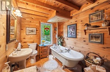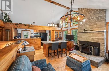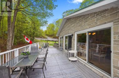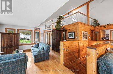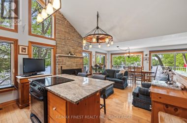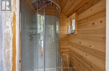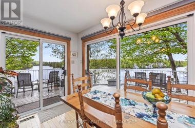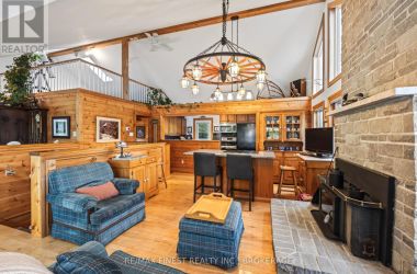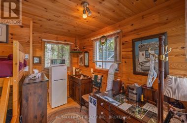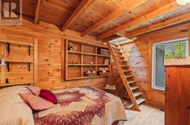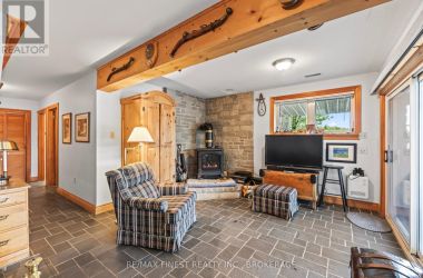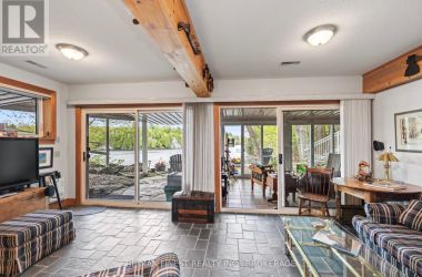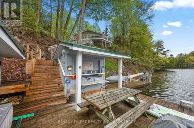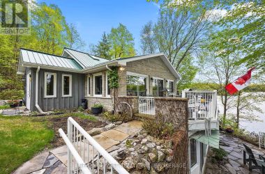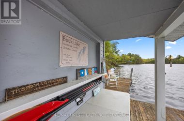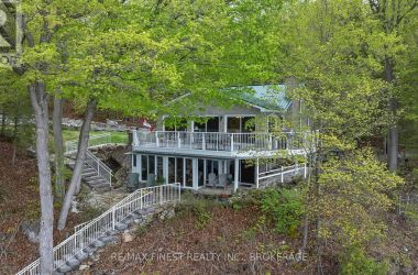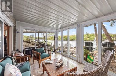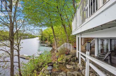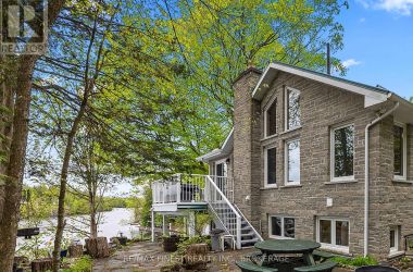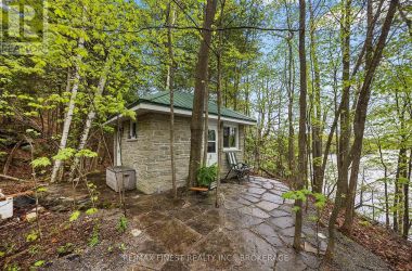 Just a short drive from downtown Kingston and a quick jaunt into Westport, nestled among more than 20 varieties of mature trees, on spring fed Buck Lake and in the Canadian Shield, this prestigious stone, raised bungalow is waiting for you to call home. The main floor boasts floor to ceiling windows and patio doors to the wrap around deck and clear, 180 degree view of Crown land including exclusive direct sight of the famous local landmark, Pulpit Island with the iconic "Devil's Pulpit". The lower level, which is a walk-out, has two additional bedrooms (that could be 3), a 4-piece bathroom, laundry closet, cozy rec room with propane fireplace and like upstairs, floor to ceiling windows and patio doors so that you never lost the view. You walk out into a three season space under the deck, here you'll spend many nights playing cards/games. Just a few steps from the main house is a beautiful 4 season guest house, complete with a single/double bunk bed, toilet, sink and outdoor shower. Take the stone steps down to the crystal clear and deep shoreline, pop open the cabana and host the best dock party around! There is plenty of room on the dock for all sorts of activities and the original solid boat house is ready, waiting to house your watercraft of choice. The period style of the building's living space (2,078 sq ft) is enhanced by artful, expansive and expensive landscaping of local stone and materials; patios, pathways, limestone steps, iron railings, border rock fences, 2 large rough cut board and batten pine sheds, with steel roofs to match the main house! Upgraded Septic system, Brand new Kohler-Generator, and Bunkhouse Cabin. This is a home that needs to be seen and experienced in person, so come see today! (id:50836)