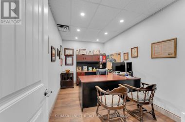 Well-appointed commercial building located in the heart of downtown Napanee, offering excellent visibility, accessibility, and ample on-site parking. This one-level property features approximately 1,089 sq ft of functional interior space designed to suit a wide range of professional and commercial uses. The layout includes a welcoming front reception area, a large boardroom/meeting room, four private offices, a dedicated storage room, and a staff kitchen. A full bathroom with shower adds convenience for employees or extended business hours. The space is thoughtfully configured to support professional operations such as financial services, medical or wellness practices, legal or administrative offices, or owner- occupied businesses. Finished with durable flooring, updated lighting, and a neutral interior, the building offers a move-in-ready environment while still allowing flexibility for future customization. The single-storey design provides easy access for clients and staff, and the property's downtown core location ensures proximity to local amenities, services, and complementary businesses. With C3 Central Commercial zoning, this property presents an excellent opportunity for owner-users or investors seeking a versatile commercial asset in a strong central location. A rare chance to secure a standalone commercial building with parking in downtown Napanee. (id:50836)