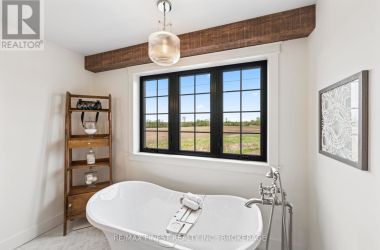 Welcome to 848 Windermere Drive - an executive custom-built home in one of Kingston's most desirable neighbourhoods ! This meticulously custom crafted residence offers over 5000 sq. ft. of luxurious living space with high-end finishes and thoughtful upgrades throughout. From the grand timber frame front porch and 7.5 ft double entry door to the soaring 10 ft ceilings, every detail has been designed for elegance and comfort. The gourmet kitchen features solid wood Mennonite cabinetry, a massive 10 ft island, quartz countertops, JennAir appliances, and a walk-in pantry with a built-in coffee bar and live edge finishes. The great room impresses with wood beams, an oversized gas fireplace, custom built-ins, and a 18 ft patio door opening to a 12 x 30 covered timber frame deck. The main floor also includes a formal dining room, massive mudroom with heated tile, and a private office space. Upstairs, the primary suite boasts vaulted ceilings, dual walk-in closets, a spa-like ensuite with heated floors, a soaker tub, and a 5 x 6 ft steam shower. Three additional bedrooms include generous closets and ensuite or shared access to full baths -- all with heated floors. The fully finished basement offers 9 ft ceilings, a cold room, gym/bedroom, bath, and a custom-built entertainment bar. Additional highlights: hydrostatic heated garage slab, in-floor radiant heating, triple pane windows, engineered white oak floors, smart pre-wiring, and R60 insulation for superior efficiency. This home is a rare find --combining craftsmanship, technology, and timeless style in every corner! (id:50836)