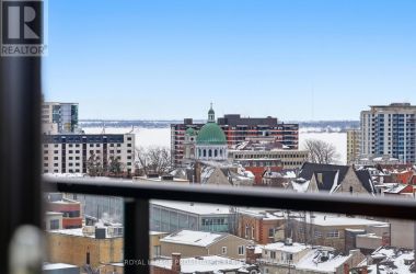 Stunning, beautifully finished top floor corner unit featuring 2 bedrooms, 2 full baths, 2 balconies, spectacular water views & a well-designed layout in the heart of Downtown Kingston. Welcome to The Crown Condominiums! This cozy ninth-floor unit is host to soaring ceilings, an open-concept designer kitchen connected to a dedicated dining & living are offering sweeping panoramic views of both Downtown Kingston & Lake Ontario. Enjoy premium amenities including in-suite laundry, a storage locker, underground parking, a rooftop terrace with BBQs, lounge areas, a party room with full kitchen, a fitness center with yoga studio & concierge service. Located quite literally in the middle of the Downtown core, just minutes from Queen's University, KGH/Hotel Dieu & a wide variety of restaurants, shops & amenities, this location presents unbeatable convenience. Whether you're a student, professional, or looking for an upscale urban lifestyle, this condo is a perfect place to call home. (id:50836)