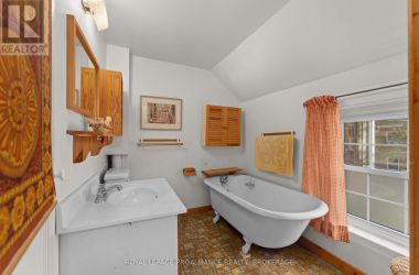 A truly special find in Kingston's historic Sydenham Ward! This charming 1 1/2 storey 'urban cottage' is loaded with character. Exposed wood beams, a floating staircase, hardwood floors, new vinyl windows and thoughtful architectural details throughout. Ideal for professionals, downsizers, or anyone seeking a home with personality and walk-ability. This home features 2 bedrooms, one full bathroom with claw foot tub and an inviting layout. The fenced courtyard offers a private outdoor retreat and the detached single-car garage provides rare convenience in this sought-after neighbourhood. Steps to Queens, downtown, hospitals, and the waterfront. this home perfectly blends historic charm with modern urban living. (id:50836)