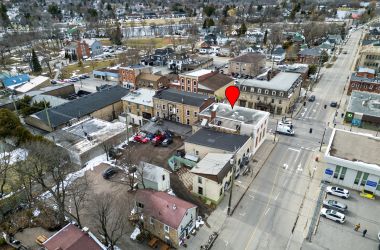 Welcome to 99 King Street East, a rare mixed use opportunity in the heart of downtown Gananoque. This landmark corner property offers exceptional visibility at King and Stone, just steps from shops, restaurants, and the waterfront. The main level features nearly 3,000 sq. ft. of open commercial space with soaring vaulted ceilings, originally designed as a bank. Bright, versatile, and full of character, it includes a private office, full bath and a second level mezzanine ideal for storage or an additional workspace. With its prominent storefront exposure, this level is perfectly suited for a gallery, retail shop, studio, professional office, or a business looking for high foot traffic. The upper level offers a spacious three bedroom, one bath residential unit with its own private entrance. The layout includes a large living room, dining room, and an eat in Eden style kitchen, along with access to an outdoor patio area. A great option for owner occupancy or as a reliable income producing rental. Whether you're an investor seeking a strong mixed use asset, an entrepreneur wanting to live above your business, or a buyer looking to expand your portfolio in a growing community, this property delivers flexibility, character, and long term potential in one of Gananoque's most desirable commercial corridors.