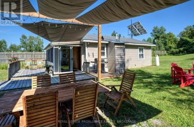Charming three-season island cottage featuring two bedrooms and one bathroom, perfect for a relaxing getaway. Enjoy outdoor living with a dining area, summer fire-pit, and a detached two-car garage converted into a fun games room. Located just minutes from the public boat and kayak launch, offering easy access to explore the St. Lawrence River. Howe island features a close-knit community with its own fire station, park, and baseball field, plus two ferries to the mainland-one running 24/7. Located conveniently between Gananoque and Kingston you're never far from for shopping, dining, and amenities. Recent updates include new pine ceilings, flooring, kitchen cabinets, updated bathroom shower, newer propane appliances, and upgraded wiring. Powered by solar panels with battery storage and backup generator. A fantastic opportunity to own a well-maintained island retreat (id:50836)